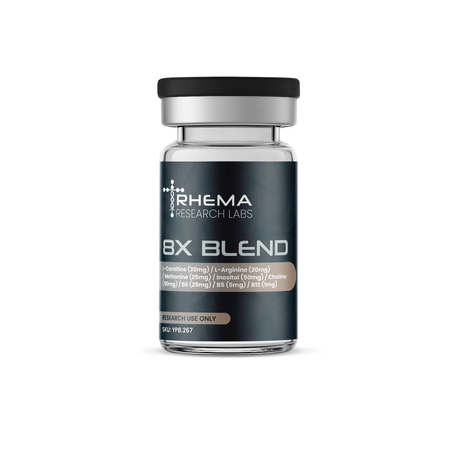 8X Blend L-Carnitine (20mg) / L-Arginine (20mg) / Methonine (25mg) / Inositol (50mg) / Choline (50mg) / B6 (25mg) / B5 (5mg) / B12 (1mg)